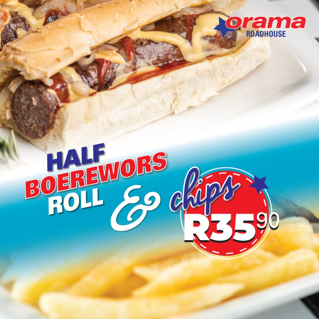 Orama Roadhouse is primarily a drive-in restaurant where we serve delicious family meals. You can enjoy your meal in the comfort of your car while watching a movie on our big screen. We also cater for people who want sit in our diner style restaurant. For the ultimate roadhouse experience visit us, where you always get service with a smile and never leave hungry.